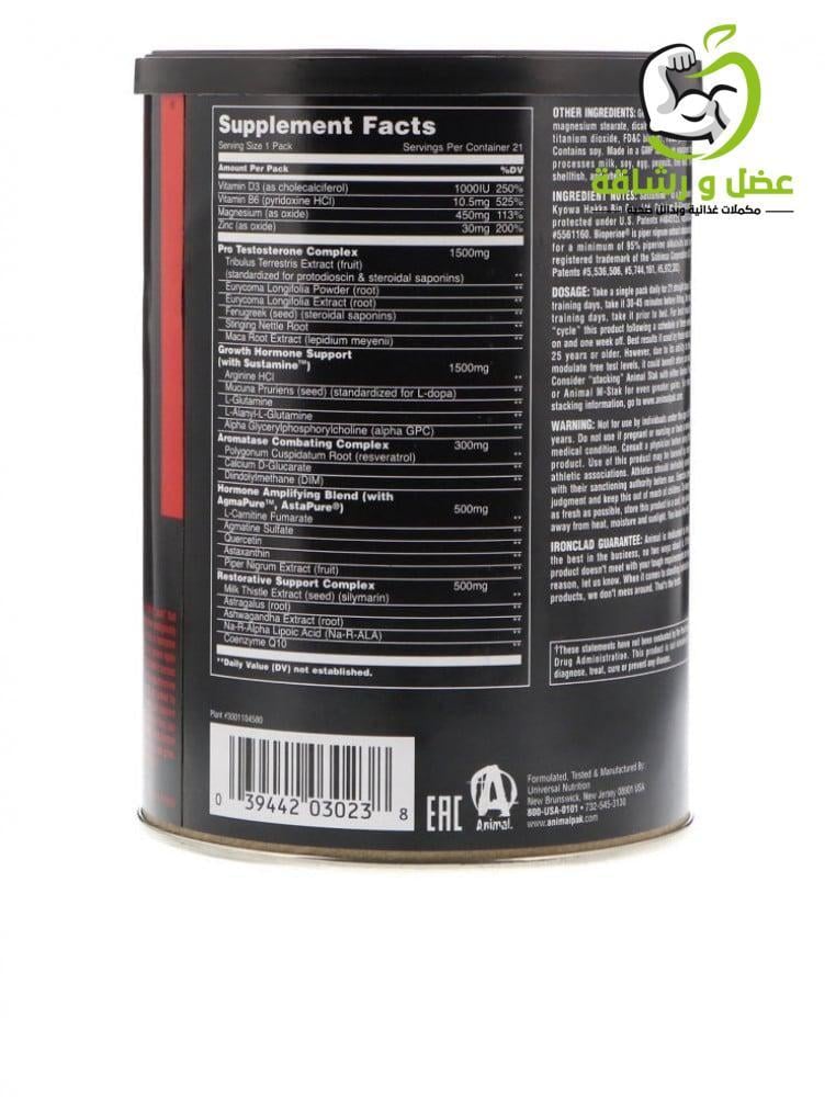 من نحن في عام 1983 ، تأسست الحيوانات مع ولادة Animal Pak، وهي "مجموعة" التدريب الرائعة التي بدأت كل شيء. ولأنها جاءت لتلبي الاحتياجات والرغبات الحقيقية للمحترفين في مجال كمال الأجسام، فقد نمت Animal بشكل ضخم على مدى عقود. اليوم، تماماً كما في السابق، تبرز Animal كاسم يعنى الثقة والنزاهة والتميز الذي لا هوادة فيه في هذه الرياضة. تمثل Animal أيضًا مجموعة من المنتجات التي صمدت أمام اختبار الزمن، واثبتت مرارًا وتكرارًا في المعامل، وفي الخنادق حيث تكون أكثر أهمية... الصالة الرياضية والمسرح. مخصص للتغذية الجادة للرياضيين الجادين، Animal هي اختيارك عندما يتعلق الأمر بالمكملات الغذائية الكاملة والشاملة. Animal. اختيار الأبطال. ما هو Animal Stak ؟ أنت لا ترفع بالصدفة. تذهب القطع بهذا الاتجاه لأنها لا تترك شيء للصدفة. التدريب الشاق والثقيل والأكل النظيف واسع النطاق لسنوات في النهاية هو الحد الأدنى المطلوب. حقق أقصى استفادة على جميع الأصعدة. وتأتي هذه "الأصعدة" في شكل إنتاج هرمون ابتنائي وتحقيق الاستفادة منه. هرمون التستوستيرون وGH- كلما حصلت عليه كلما كان أفضل. الاستروجين، الكورتيزول، DHT - كلما قل إنتاجك، كلما كان بإمكانك النمو. بالنسبة لك هناك Animal Stak، الحافة المنشطة لتلك القلائل الذين لا يتركون شيئًا للصدفة.