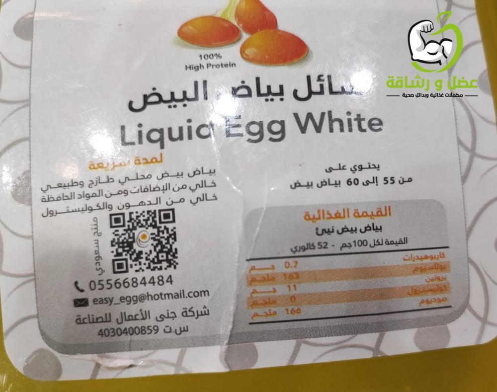 سائل بياض البيض غني بالبروتين والأحماض الأمينية لتغطية احتياجك اليومي من المغذيات، خالي من الكولسترول وبدون أي إضافات.