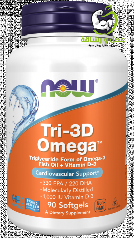 - المكمل الغذائي اوميجا 3 هو أقوى تركيبة لدينا مع 600 مليجرام اي بي ايه و300 مليجرام دي اتش ايه لكل كبسولة جيلاتينية. هذا المنتج منكه بزيت الليمون ويوفر أيضاً فيتامين دي 3 بنسبة 1.000 وحدة دولية
