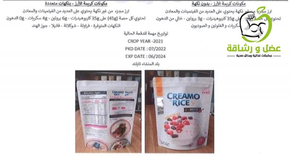 - كريم الارز مكمل كربوهيدرات قليل السكر والدسم.