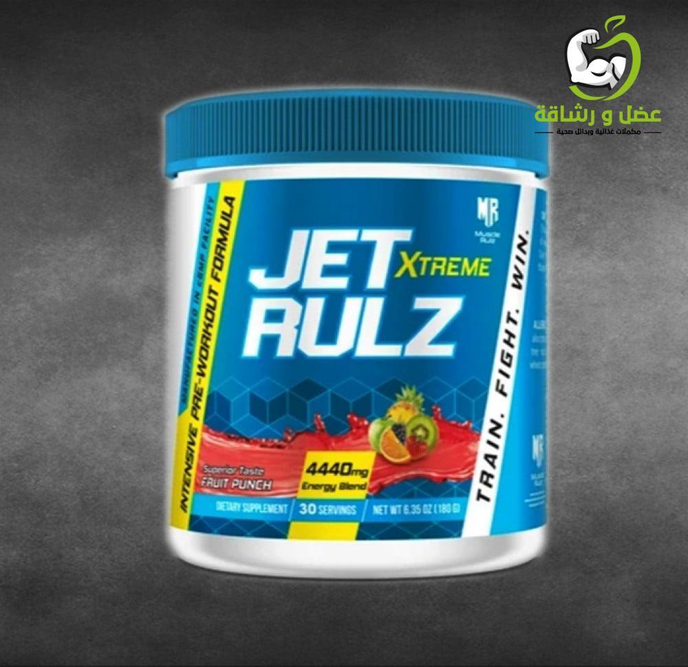 Muscle Rulz JET RULZ XTREME هو أفضل مكمل ما قبل التمرين الذي يغذي جسمك وعقلك لتحقيق النجاح. اكتشف أفضل مسحوق التغذية الرياضية قبل التمرين JET RULZ XTREME 4440 مجم لتحقيق هدف اللياقة البدنية الخاص بك! المكملات الغذائية قبل التمرين تزيد من الطاقة والتركيز والقدرة على التحمل.
