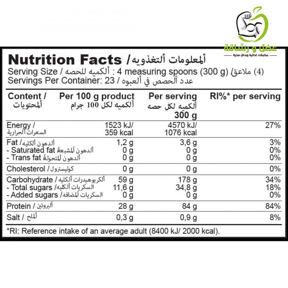 Nutritional value per 2 scoops (46 servings)